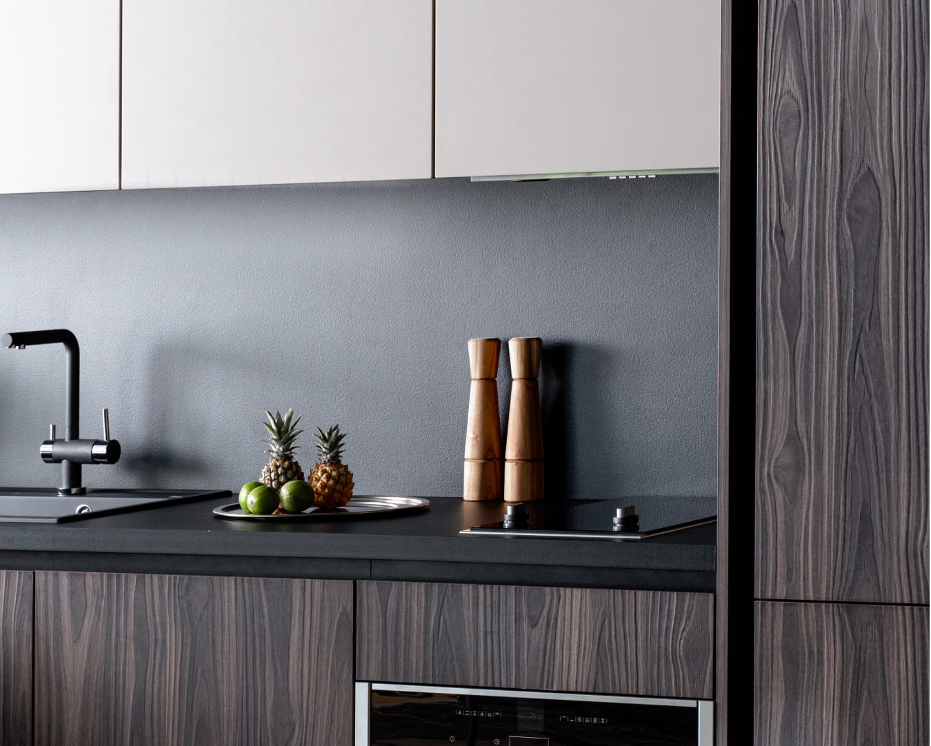 Кухня Basic с абсолютно гладкими фасадами создана нами для адептов предельной рациональности. Эта линейка оснащена инновационной системой открывания – за счёт механизма push-pull дверцы шкафов и ящики открываются от лёгкого нажатия. Благодаря эргономичным формам, продуманным деталям и недорогим материалам коллекция подходит для малогабаритных и бюджетных квартир.